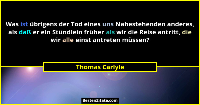 Was ist übrigens der Tod eines uns Nahestehenden anderes, als daß er ein Stündlein früher als wir die Reise antritt, die wir alle einst antreten müssen?