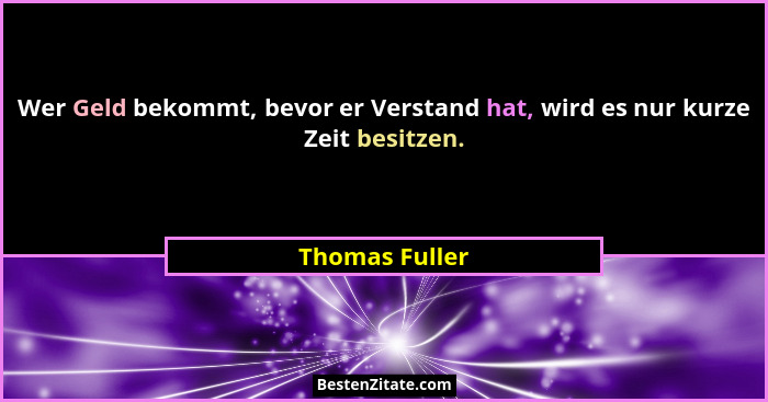 Wer Geld bekommt, bevor er Verstand hat, wird es nur kurze Zeit besitzen.