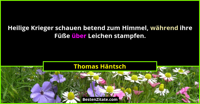 Heilige Krieger schauen betend zum Himmel, während ihre Füße über Leichen stampfen.