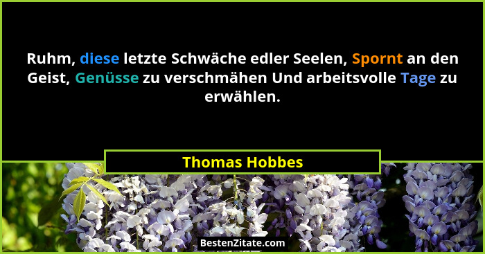 Ruhm, diese letzte Schwäche edler Seelen, Spornt an den Geist, Genüsse zu verschmähen Und arbeitsvolle Tage zu erwählen.