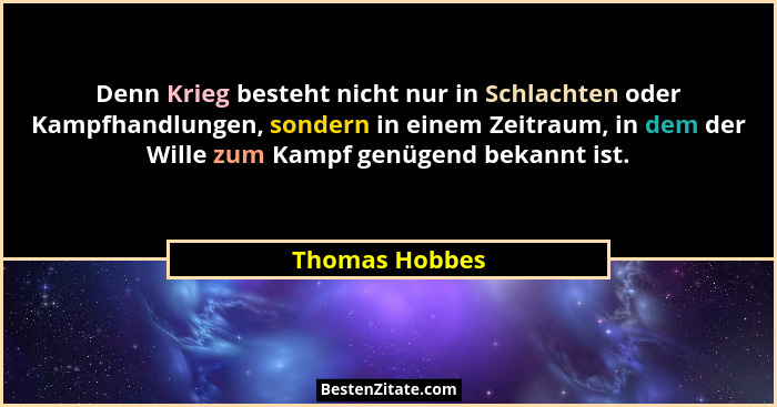 Denn Krieg besteht nicht nur in Schlachten oder Kampfhandlungen, sondern in einem Zeitraum, in dem der Wille zum Kampf genügend bekannt ist.
