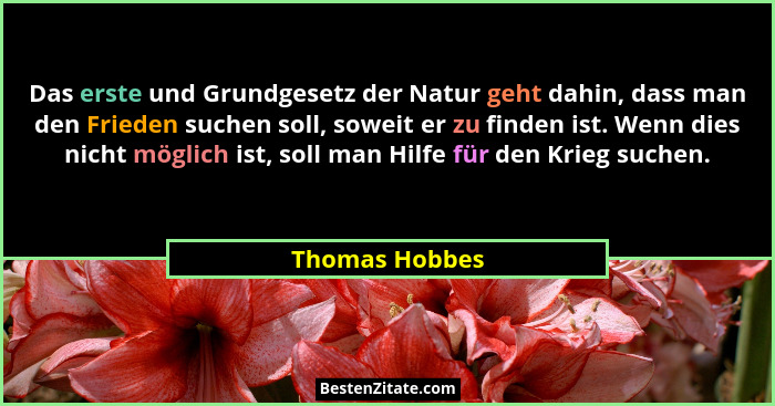 Das erste und Grundgesetz der Natur geht dahin, dass man den Frieden suchen soll, soweit er zu finden ist. Wenn dies nicht möglich ist, soll man Hilfe für den Krieg suchen.