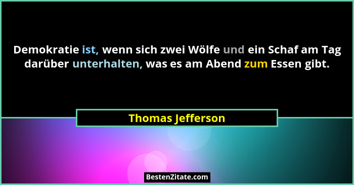 Demokratie ist, wenn sich zwei Wölfe und ein Schaf am Tag darüber unterhalten, was es am Abend zum Essen gibt.