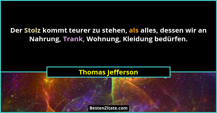Der Stolz kommt teurer zu stehen, als alles, dessen wir an Nahrung, Trank, Wohnung, Kleidung bedürfen.