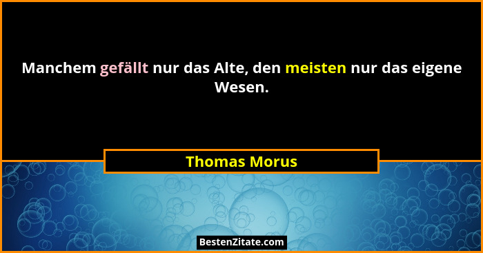 Manchem gefällt nur das Alte, den meisten nur das eigene Wesen.