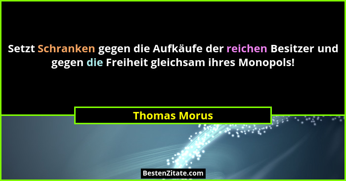 Setzt Schranken gegen die Aufkäufe der reichen Besitzer und gegen die Freiheit gleichsam ihres Monopols!