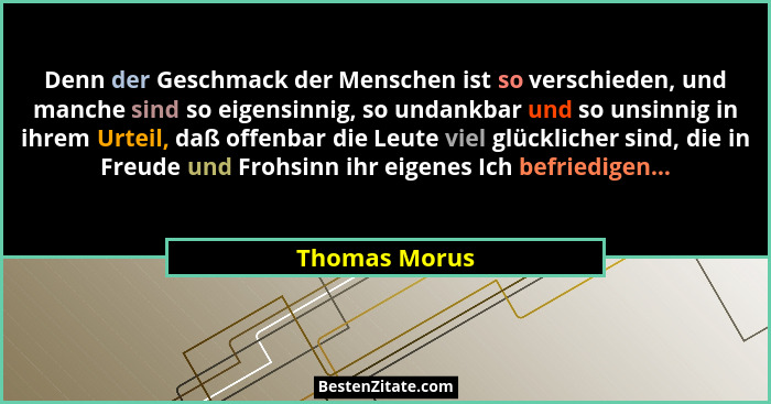 Denn der Geschmack der Menschen ist so verschieden, und manche sind so eigensinnig, so undankbar und so unsinnig in ihrem Urteil, daß offenbar die Leute viel glücklicher sind, die in Freude und Frohsinn ihr eigenes Ich befriedigen...