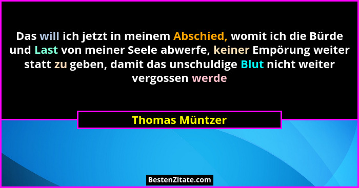 Das will ich jetzt in meinem Abschied, womit ich die Bürde und Last von meiner Seele abwerfe, keiner Empörung weiter statt zu geben, damit das unschuldige Blut nicht weiter vergossen werde