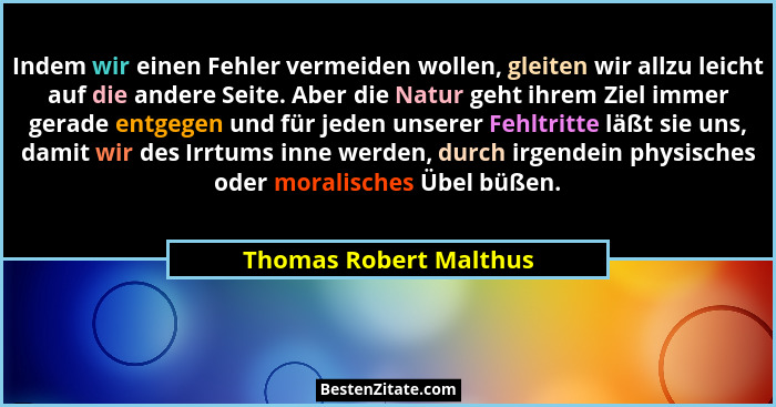 Indem wir einen Fehler vermeiden wollen, gleiten wir allzu leicht auf die andere Seite. Aber die Natur geht ihrem Ziel immer gerade entgegen und für jeden unserer Fehltritte läßt sie uns, damit wir des Irrtums inne werden, durch irgendein physisches oder moralisches Übel büßen.