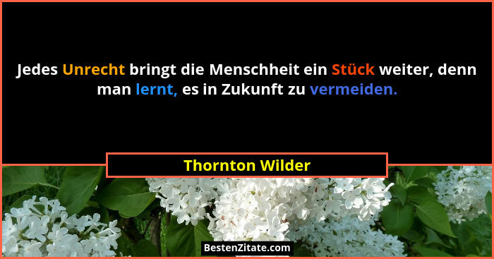 Jedes Unrecht bringt die Menschheit ein Stück weiter, denn man lernt, es in Zukunft zu vermeiden.