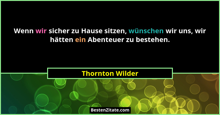 Wenn wir sicher zu Hause sitzen, wünschen wir uns, wir hätten ein Abenteuer zu bestehen.