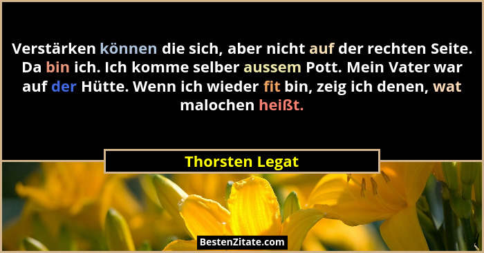 Verstärken können die sich, aber nicht auf der rechten Seite. Da bin ich. Ich komme selber aussem Pott. Mein Vater war auf der Hütte. Wenn ich wieder fit bin, zeig ich denen, wat malochen heißt.