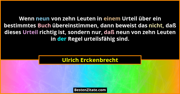 Wenn neun von zehn Leuten in einem Urteil über ein bestimmtes Buch übereinstimmen, dann beweist das nicht, daß dieses Urteil richtig ist, sondern nur, daß neun von zehn Leuten in der Regel urteilsfähig sind.