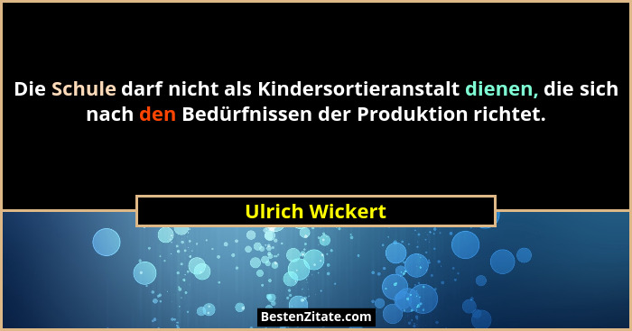Die Schule darf nicht als Kindersortieranstalt dienen, die sich nach den Bedürfnissen der Produktion richtet.