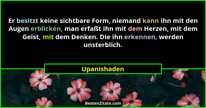 Er besitzt keine sichtbare Form, niemand kann ihn mit den Augen erblicken, man erfaßt ihn mit dem Herzen, mit dem Geist, mit dem Denken. Die ihn erkennen, werden unsterblich.