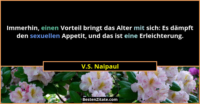 Immerhin, einen Vorteil bringt das Alter mit sich: Es dämpft den sexuellen Appetit, und das ist eine Erleichterung.