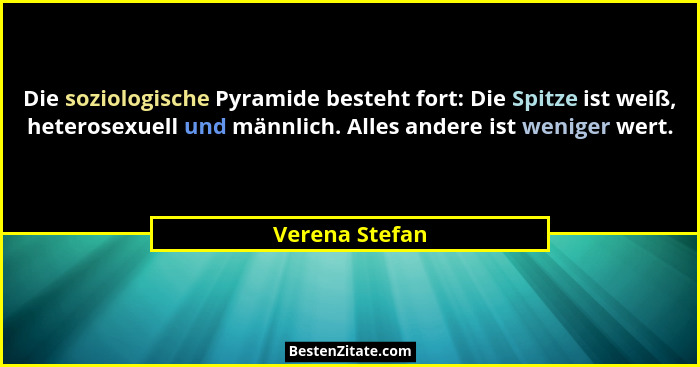 Die soziologische Pyramide besteht fort: Die Spitze ist weiß, heterosexuell und männlich. Alles andere ist weniger wert.