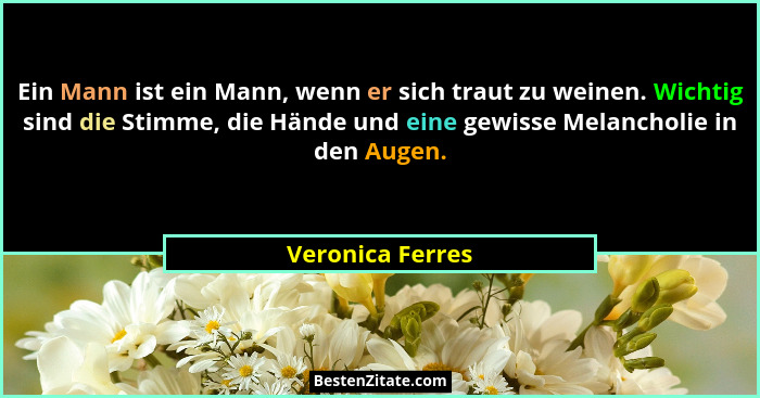 Ein Mann ist ein Mann, wenn er sich traut zu weinen. Wichtig sind die Stimme, die Hände und eine gewisse Melancholie in den Augen.