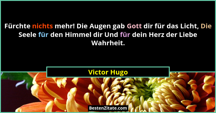 Fürchte nichts mehr! Die Augen gab Gott dir für das Licht, Die Seele für den Himmel dir Und für dein Herz der Liebe Wahrheit.