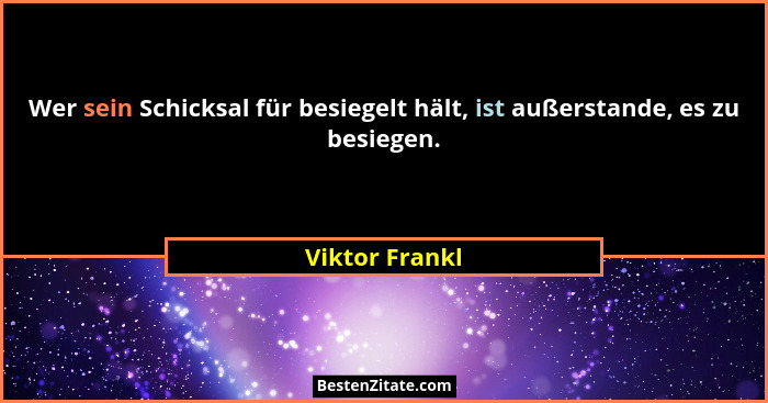 Wer sein Schicksal für besiegelt hält, ist außerstande, es zu besiegen.