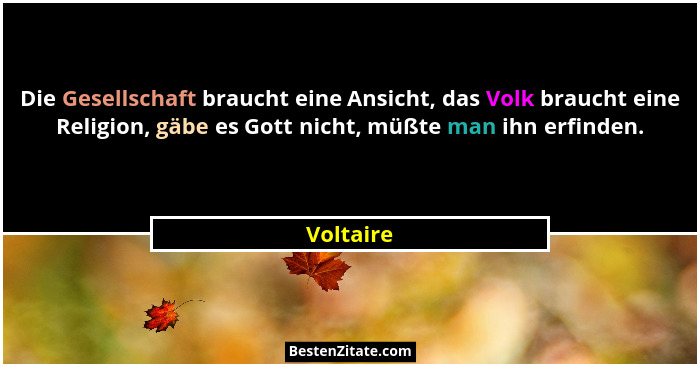 Die Gesellschaft braucht eine Ansicht, das Volk braucht eine Religion, gäbe es Gott nicht, müßte man ihn erfinden.