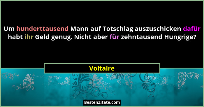 Um hunderttausend Mann auf Totschlag auszuschicken dafür habt ihr Geld genug. Nicht aber für zehntausend Hungrige?
