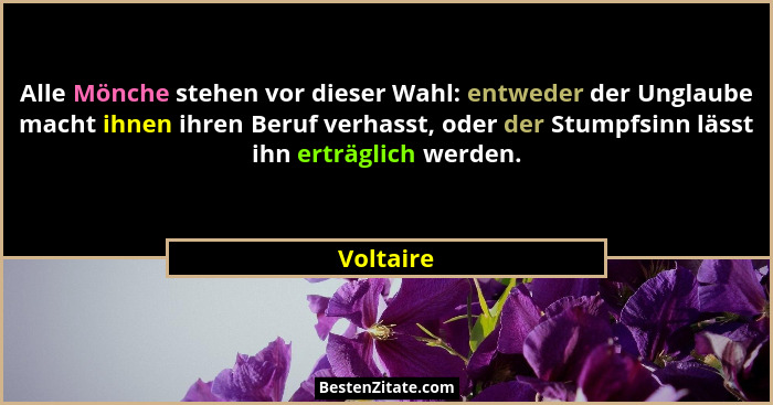 Alle Mönche stehen vor dieser Wahl: entweder der Unglaube macht ihnen ihren Beruf verhasst, oder der Stumpfsinn lässt ihn erträglich werden.