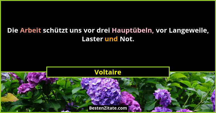 Die Arbeit schützt uns vor drei Hauptübeln, vor Langeweile, Laster und Not.