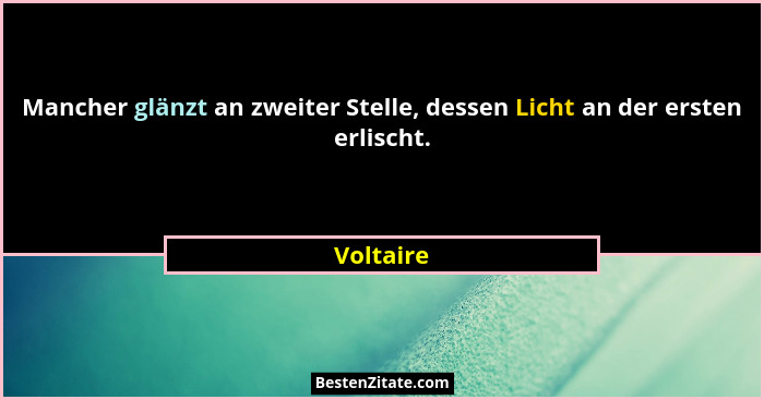 Mancher glänzt an zweiter Stelle, dessen Licht an der ersten erlischt.