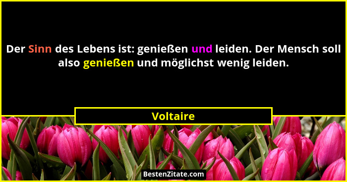 Der Sinn des Lebens ist: genießen und leiden. Der Mensch soll also genießen und möglichst wenig leiden.