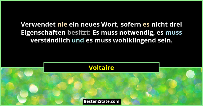 Verwendet nie ein neues Wort, sofern es nicht drei Eigenschaften besitzt: Es muss notwendig, es muss verständlich und es muss wohlklingend sein.
