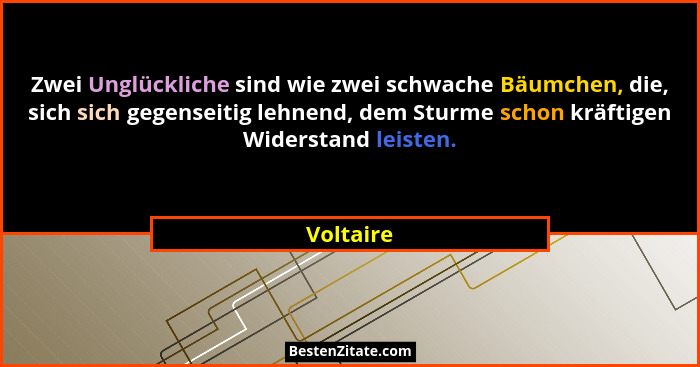Zwei Unglückliche sind wie zwei schwache Bäumchen, die, sich sich gegenseitig lehnend, dem Sturme schon kräftigen Widerstand leisten.