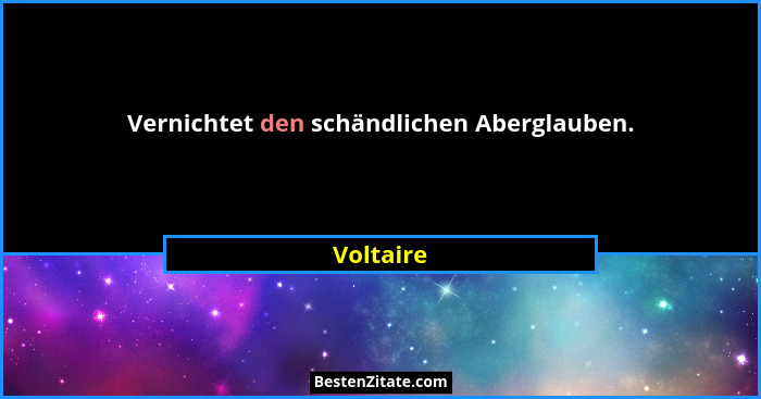 Vernichtet den schändlichen Aberglauben.
