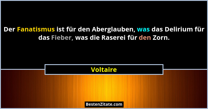 Der Fanatismus ist für den Aberglauben, was das Delirium für das Fieber, was die Raserei für den Zorn.