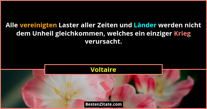 Alle vereinigten Laster aller Zeiten und Länder werden nicht dem Unheil gleichkommen, welches ein einziger Krieg verursacht.