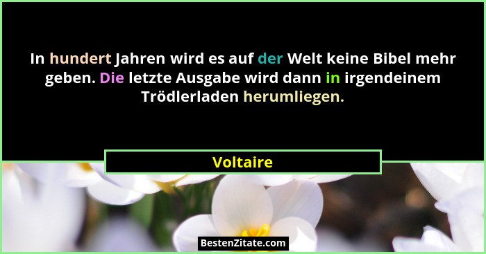 In hundert Jahren wird es auf der Welt keine Bibel mehr geben. Die letzte Ausgabe wird dann in irgendeinem Trödlerladen herumliegen.