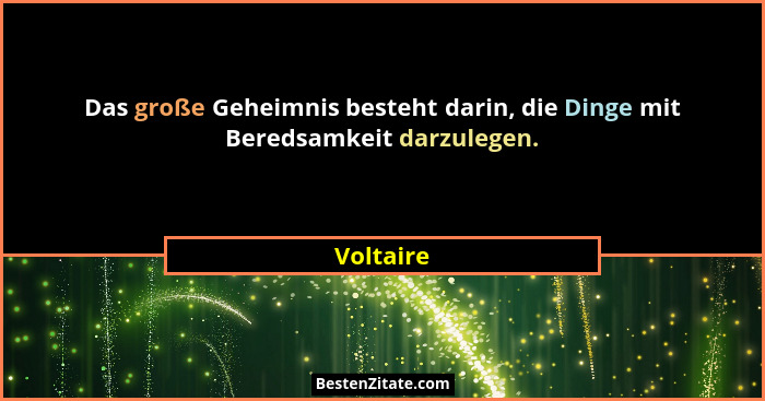 Das große Geheimnis besteht darin, die Dinge mit Beredsamkeit darzulegen.