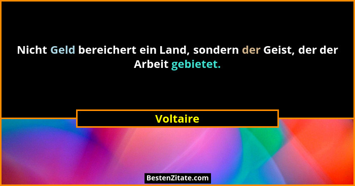 Nicht Geld bereichert ein Land, sondern der Geist, der der Arbeit gebietet.