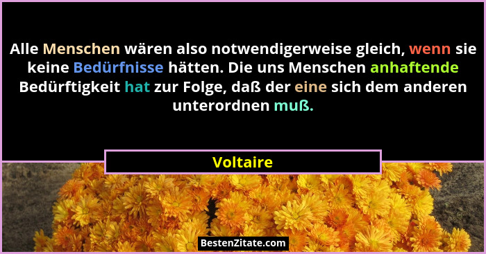 Alle Menschen wären also notwendigerweise gleich, wenn sie keine Bedürfnisse hätten. Die uns Menschen anhaftende Bedürftigkeit hat zur Folge, daß der eine sich dem anderen unterordnen muß.