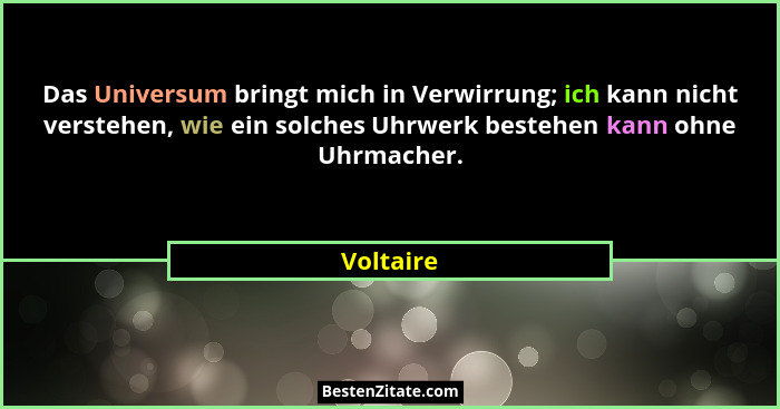 Das Universum bringt mich in Verwirrung; ich kann nicht verstehen, wie ein solches Uhrwerk bestehen kann ohne Uhrmacher.