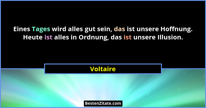 Eines Tages wird alles gut sein, das ist unsere Hoffnung. Heute ist alles in Ordnung, das ist unsere Illusion.