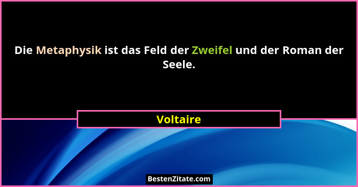 Die Metaphysik ist das Feld der Zweifel und der Roman der Seele.