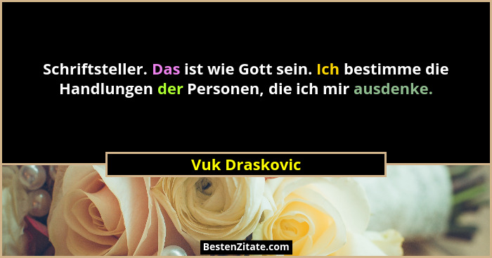 Schriftsteller. Das ist wie Gott sein. Ich bestimme die Handlungen der Personen, die ich mir ausdenke.