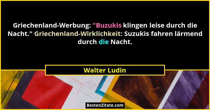 Griechenland-Werbung: "Buzukis klingen leise durch die Nacht." Griechenland-Wirklichkeit: Suzukis fahren lärmend durch die Nacht.