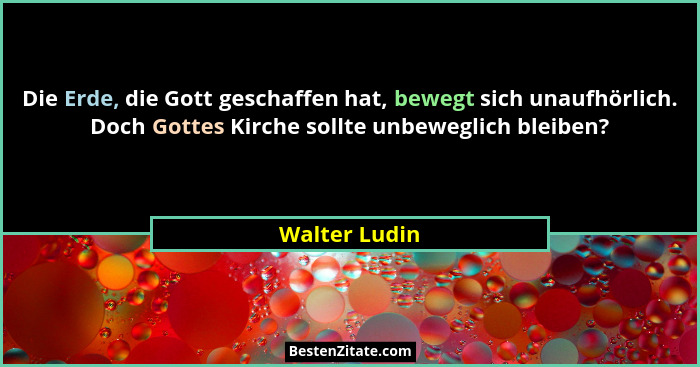 Die Erde, die Gott geschaffen hat, bewegt sich unaufhörlich. Doch Gottes Kirche sollte unbeweglich bleiben?