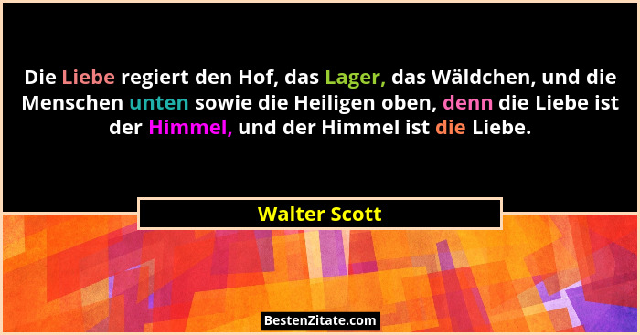 Die Liebe regiert den Hof, das Lager, das Wäldchen, und die Menschen unten sowie die Heiligen oben, denn die Liebe ist der Himmel, und der Himmel ist die Liebe.