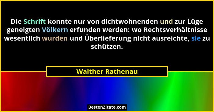 Die Schrift konnte nur von dichtwohnenden und zur Lüge geneigten Völkern erfunden werden: wo Rechtsverhältnisse wesentlich wurden und Überlieferung nicht ausreichte, sie zu schützen.