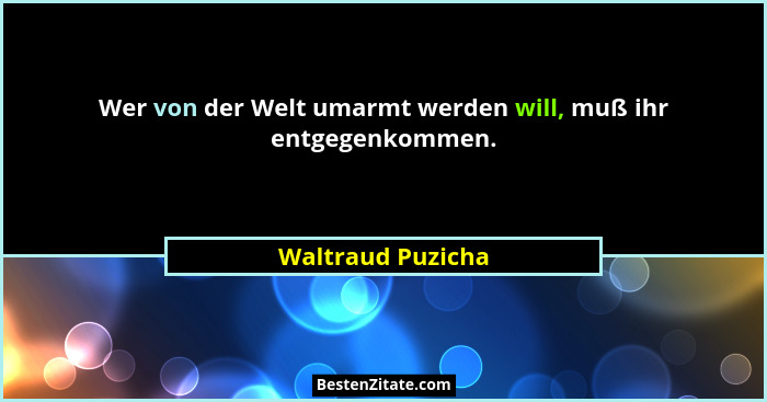 Wer von der Welt umarmt werden will, muß ihr entgegenkommen.