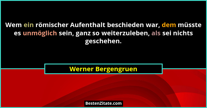 Wem ein römischer Aufenthalt beschieden war, dem müsste es unmöglich sein, ganz so weiterzuleben, als sei nichts geschehen.