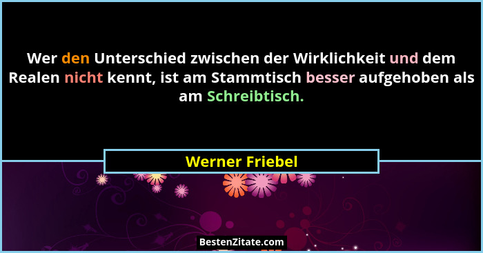 Wer den Unterschied zwischen der Wirklichkeit und dem Realen nicht kennt, ist am Stammtisch besser aufgehoben als am Schreibtisch.